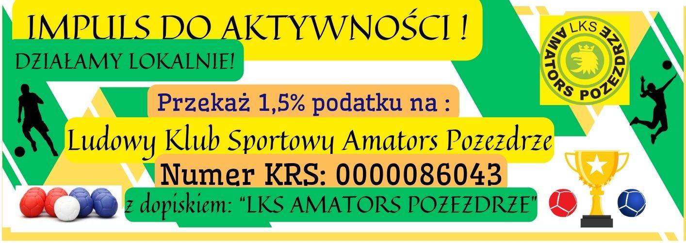 Jak każdego roku zwracamy się z ogromną prośbą do sympatyków sportu, przyjaciół oraz do wszystkich osób, które dobrze życzą naszemu klubowi, by w rozliczeniu rocznym za 2024 rok, przekazali 1,5% podatku na LKS Amators w Pozezdrzu - za pośrednictwem Warmińsko-Mazurskiego Związku Piłki Nożnej .
